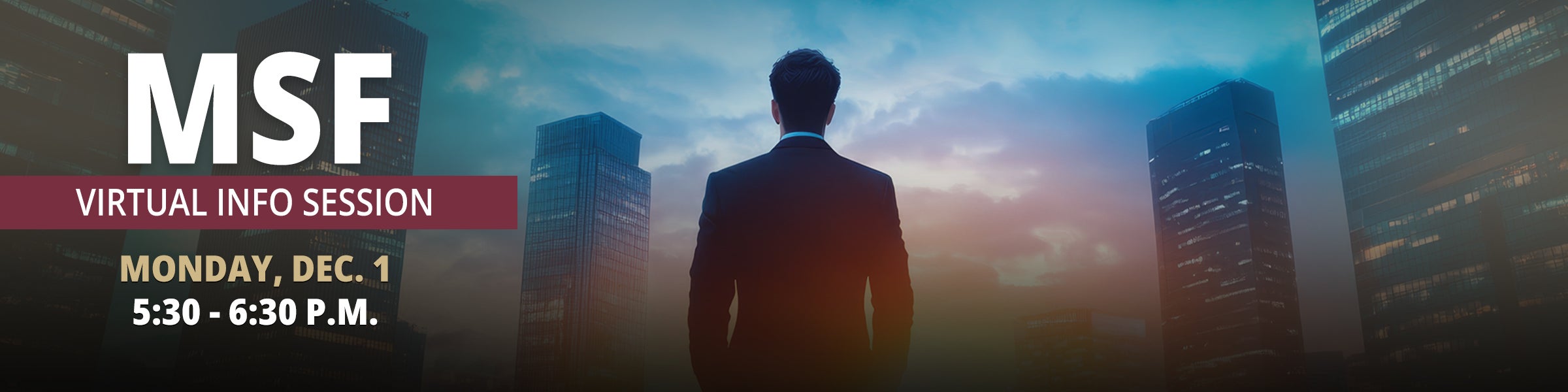 On-campus master’s applicants, prepare your application for submission by the January 15 priority deadline to start a master’s degree in Accounting (MAcc), Business Administration (MBA), Business Analytics (MS-BA) and Finance (MSF) in 2026.