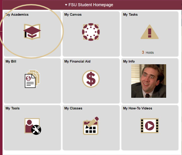 - Log in to my.fsu.edu. (Use the webpage not the app.)
