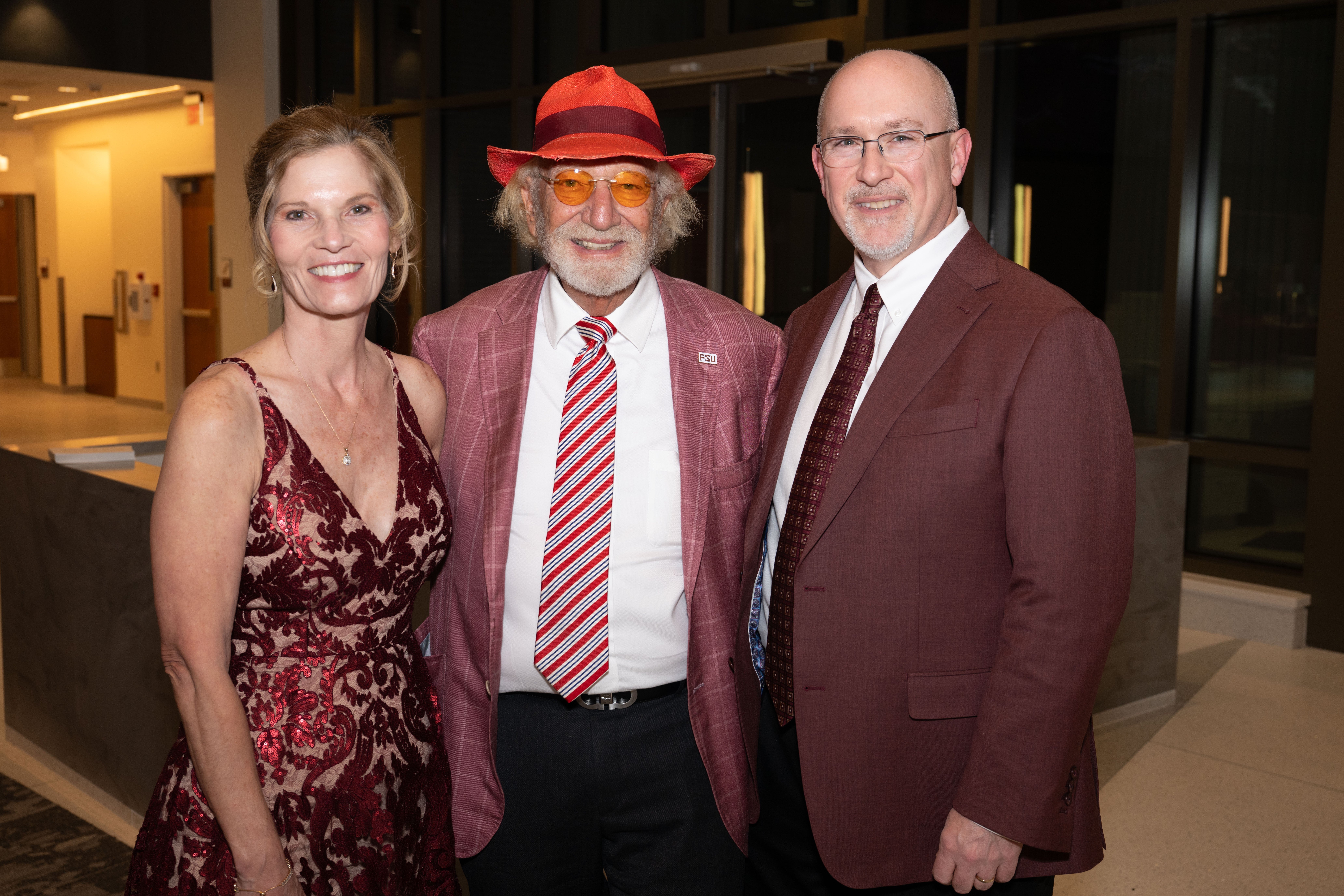 Dr. Herbert Wertheim, center, seen here with Dean Michael Hartline and Hartline's wife, Marsha, has made a $65 million philanthropic investment to endow and name FSU's College of Business the Herbert Wertheim College of Business and rename Legacy Hall, the college's world-class new building, the Herbert Wertheim Center for Business Excellence.