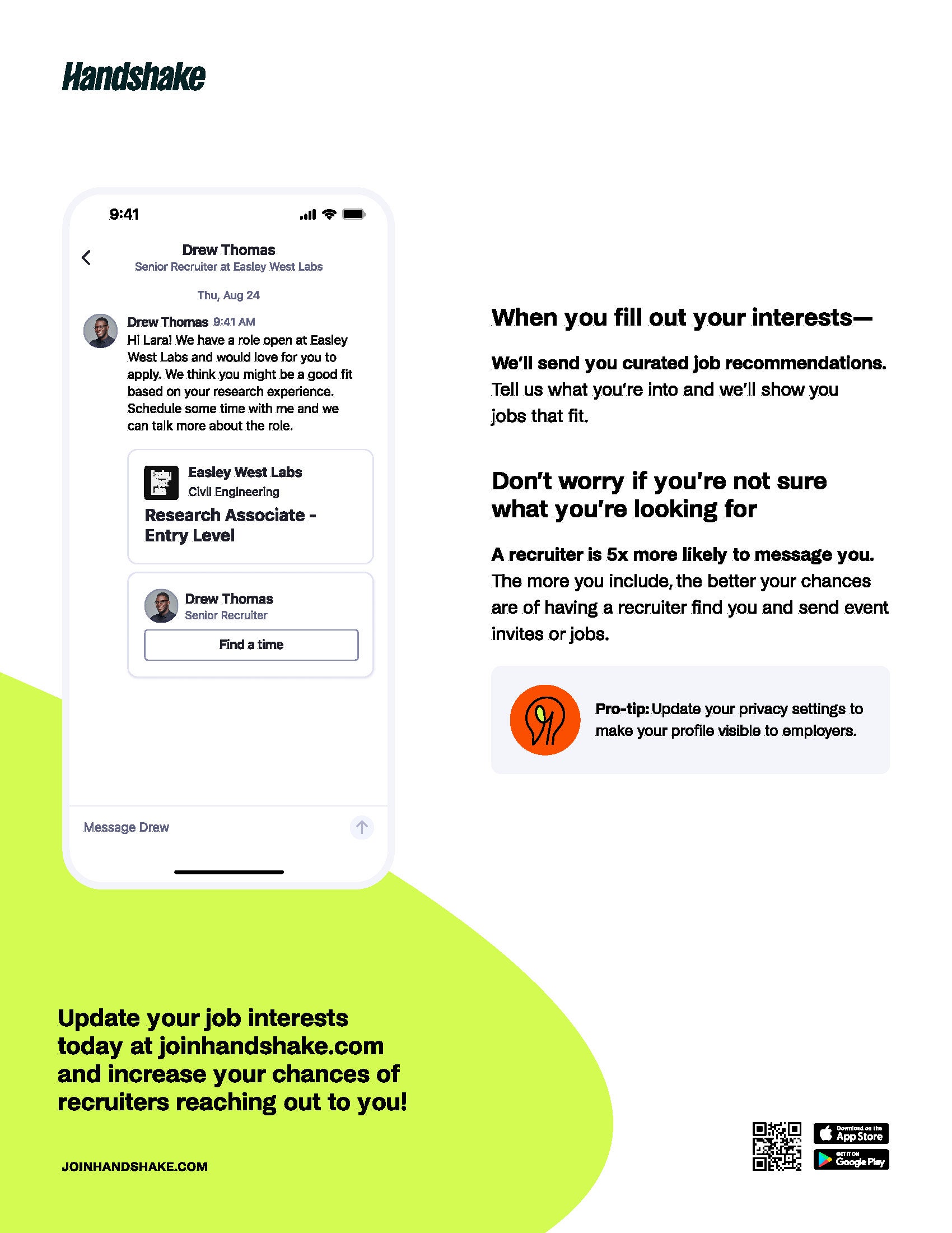 Resources provided by Business Career Services help students to successfully navigate the job market and achieve their career goals.