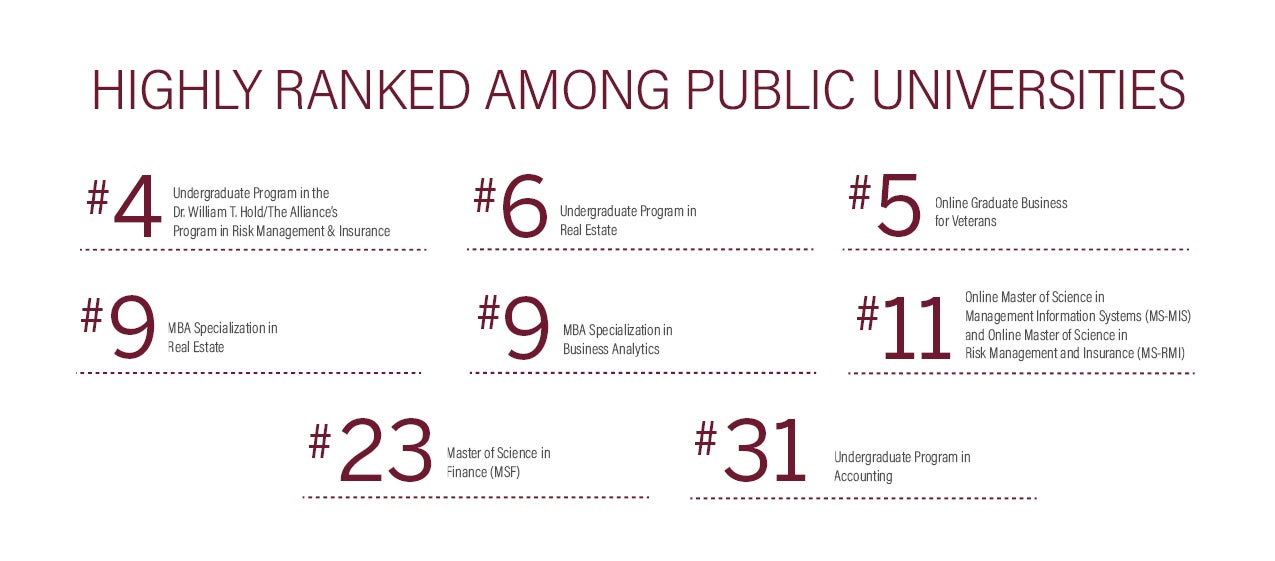We're proud of our rankings and what they do for our students. They keep our business partners coming back to us when they need employees and leaders.